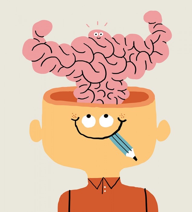 Un fondo, unos círculos, un cerebro cachotas y un niño